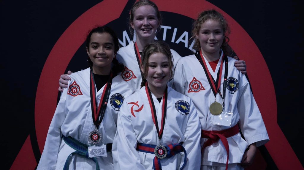 8-9YRS, 6TH KUP – 4TH KUP, FEMALE, (COMB)   5-7YRS, 6TH KUP – 4TH KUP, FEMALE, GOLD: Elizabeth Barretto, SILVER: Tilly Cooper, BRONZE: Maia Pampellonne & Matilda Prockter